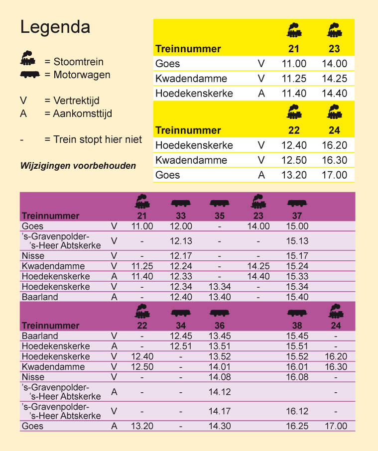 Dienstregeling archief Stoomtrein Goes-Borsele